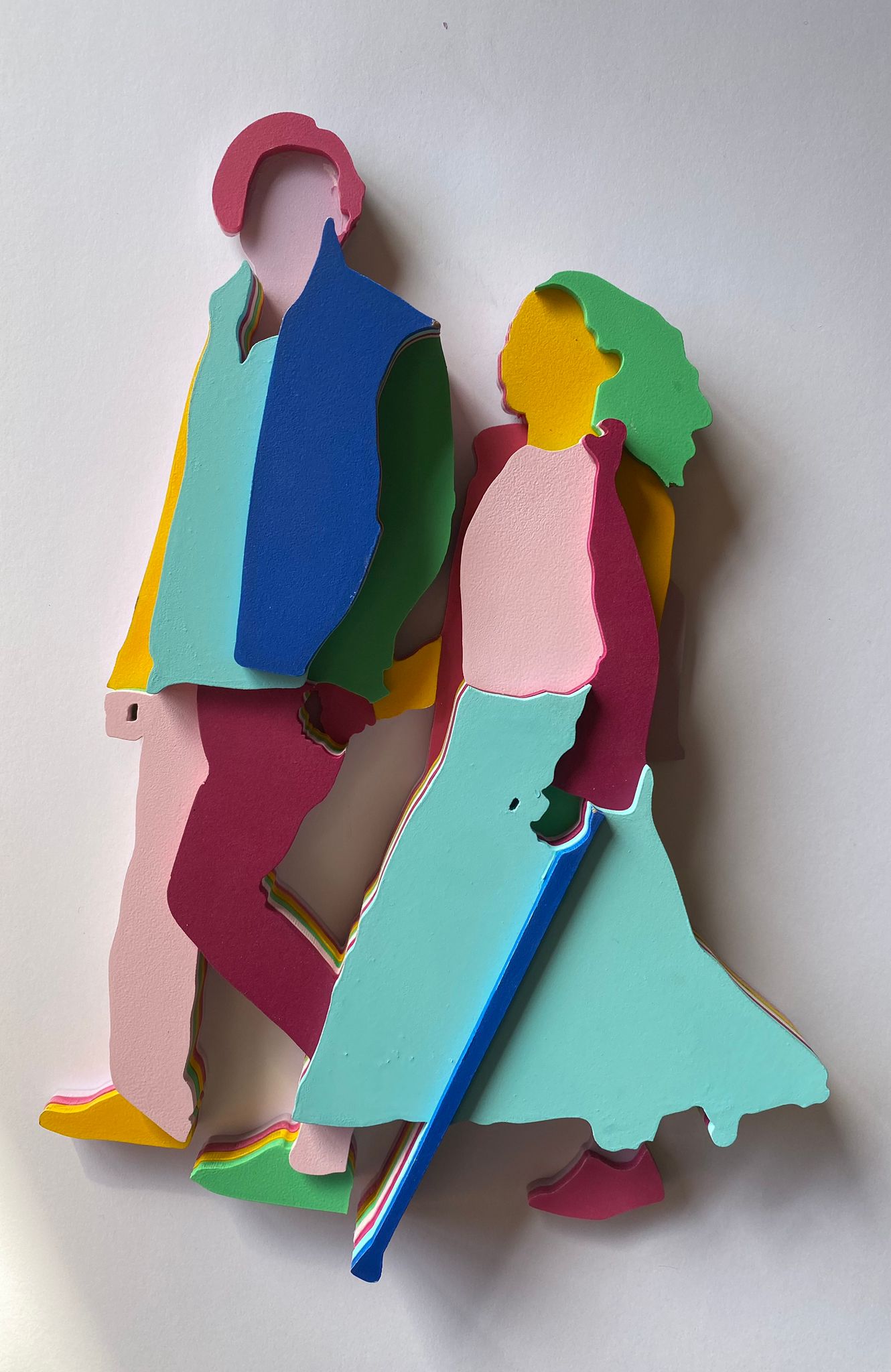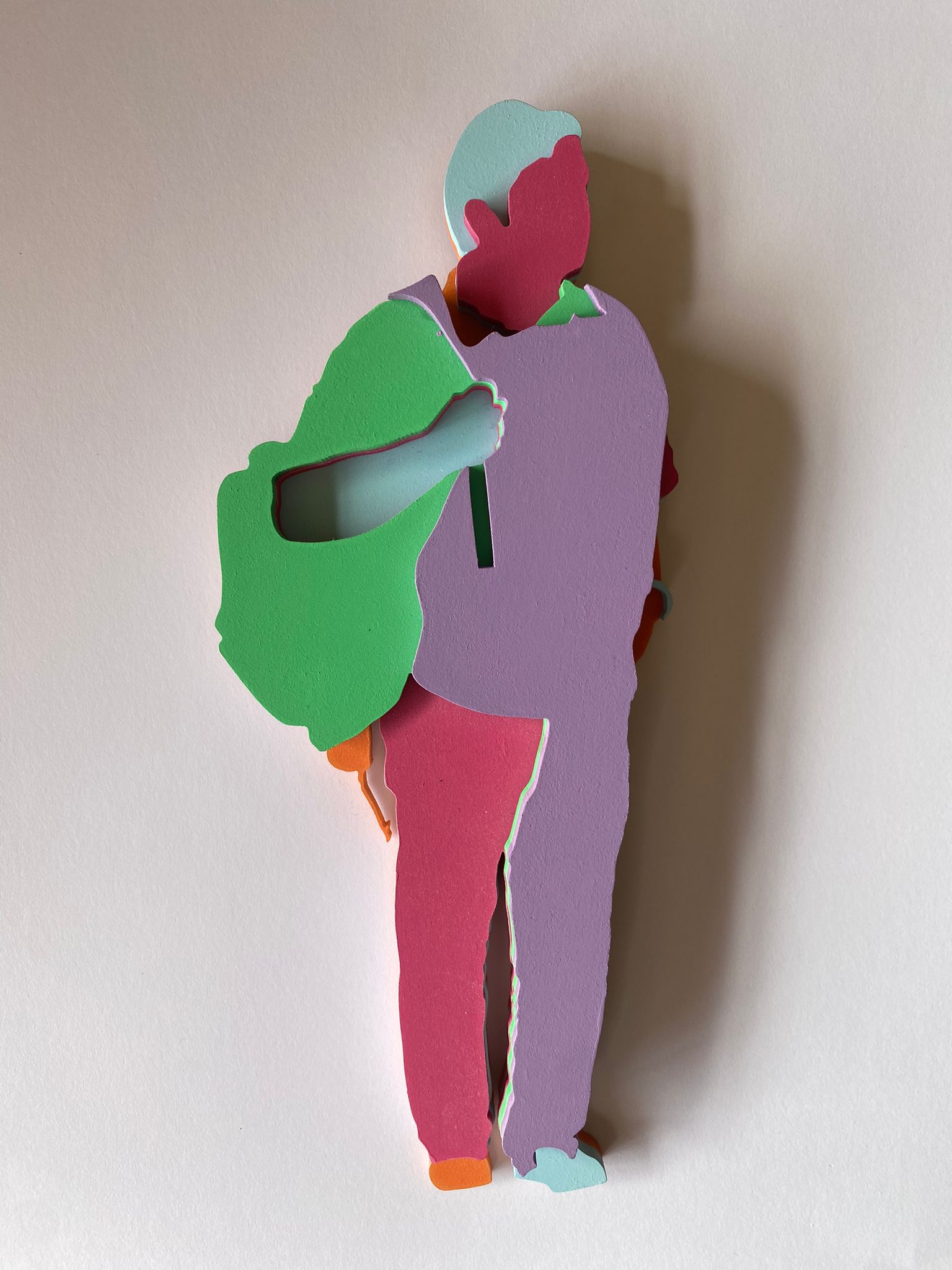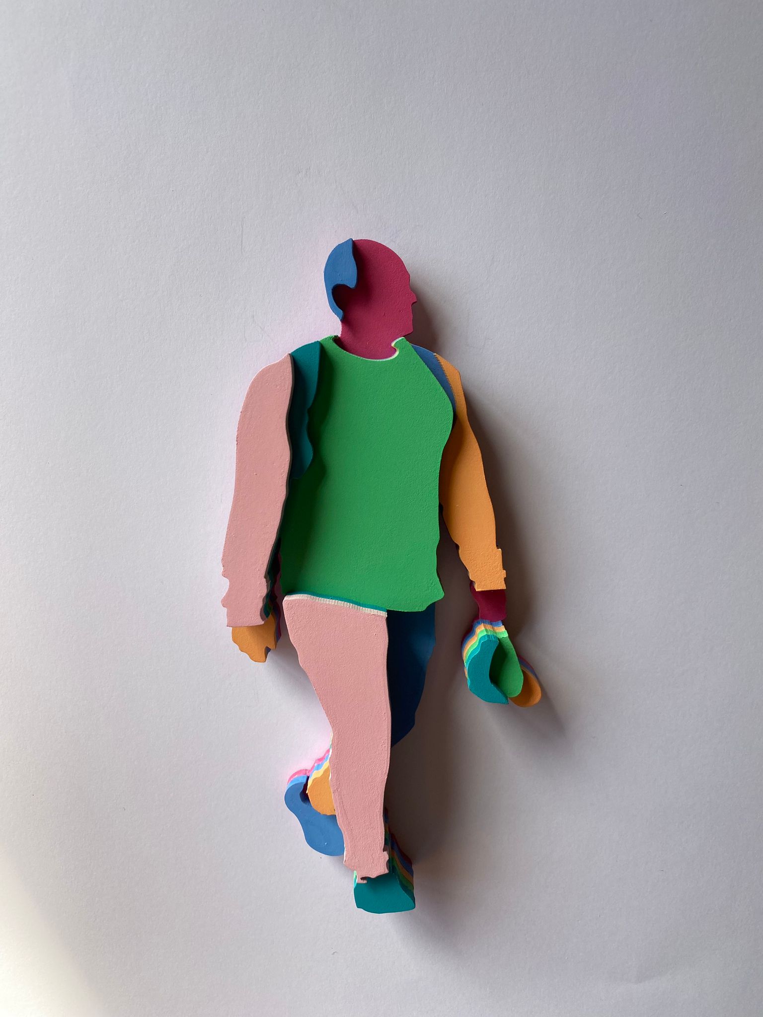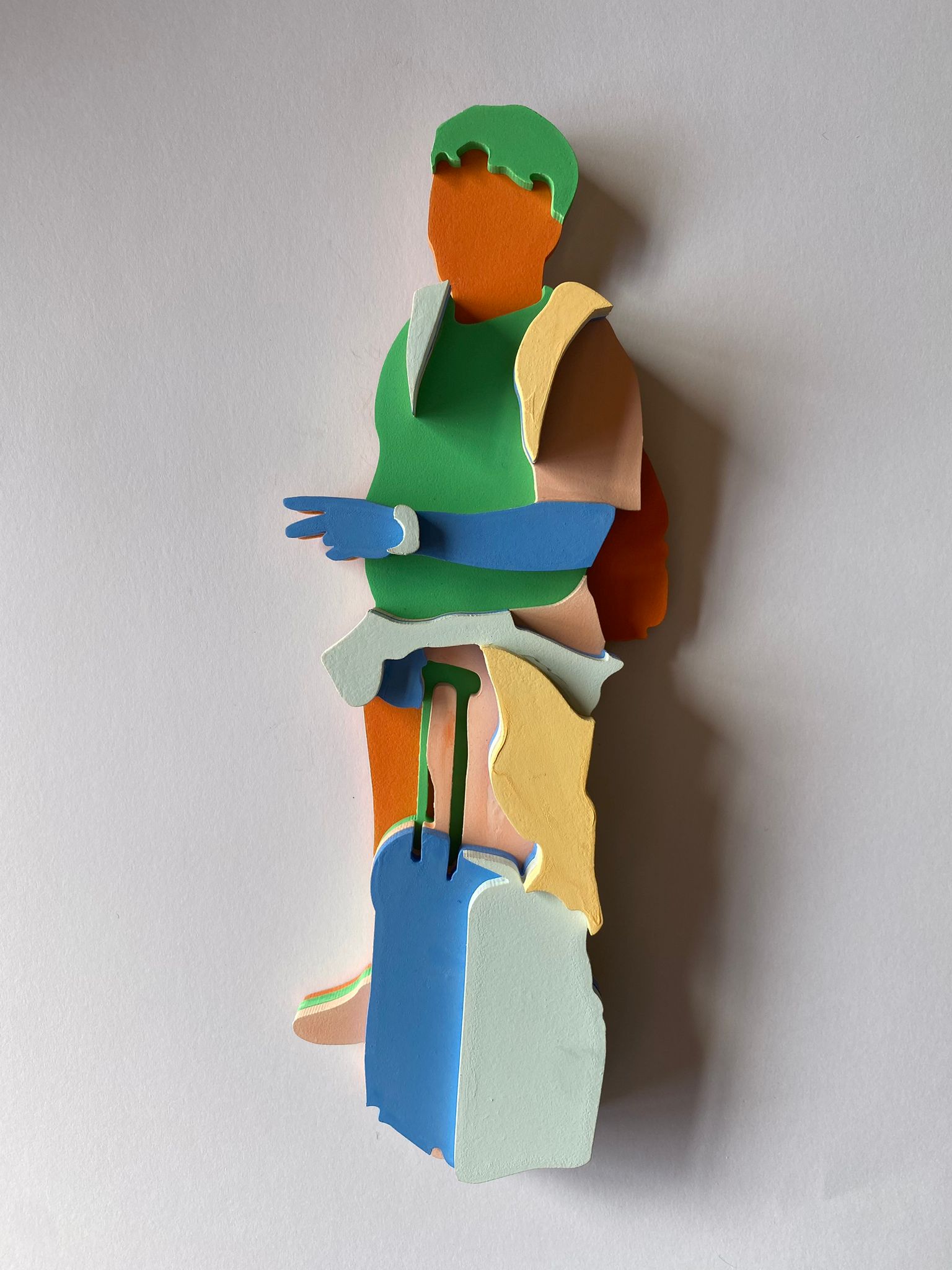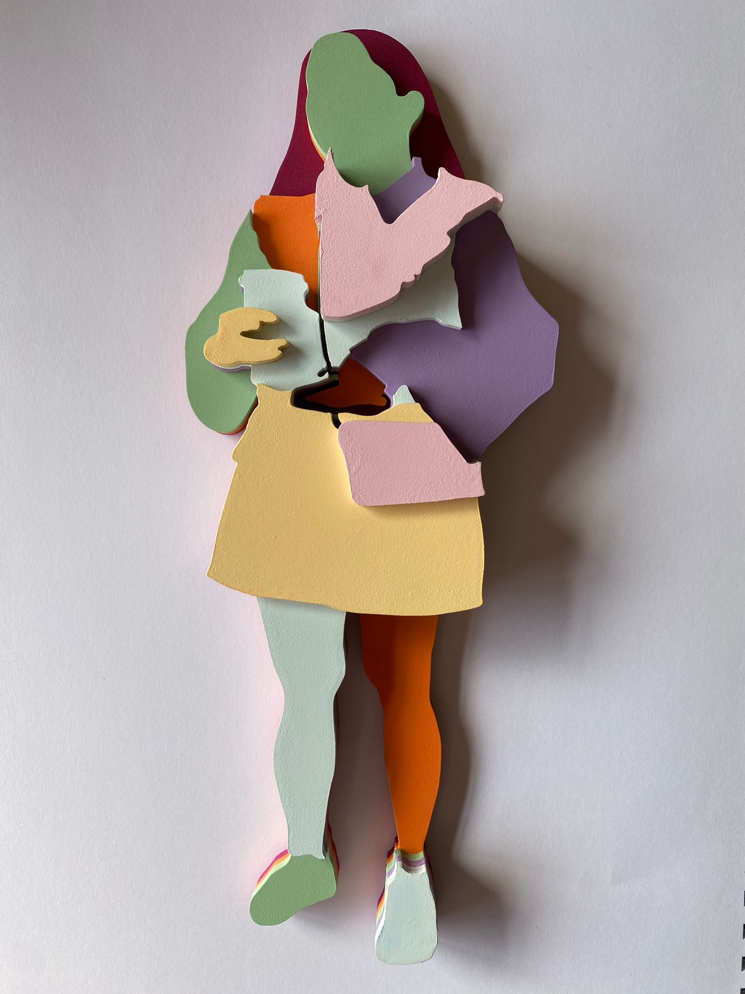 Holly Jones is a contemporary sculptor and printmaker, specialising in bold colourful works. Central to her innovative practice is the process of assemblage. Through the meticulous arrangement and combination of diverse materials and often found objects, Jones crafts narratives that delve deep into aspects of humanity, exploring themes of identity, connection and a growing consumerist environment. Her art serves as a vibrant, textural commentary, inviting viewers to reflect on the complexities of existence through a uniquely compelling lens.