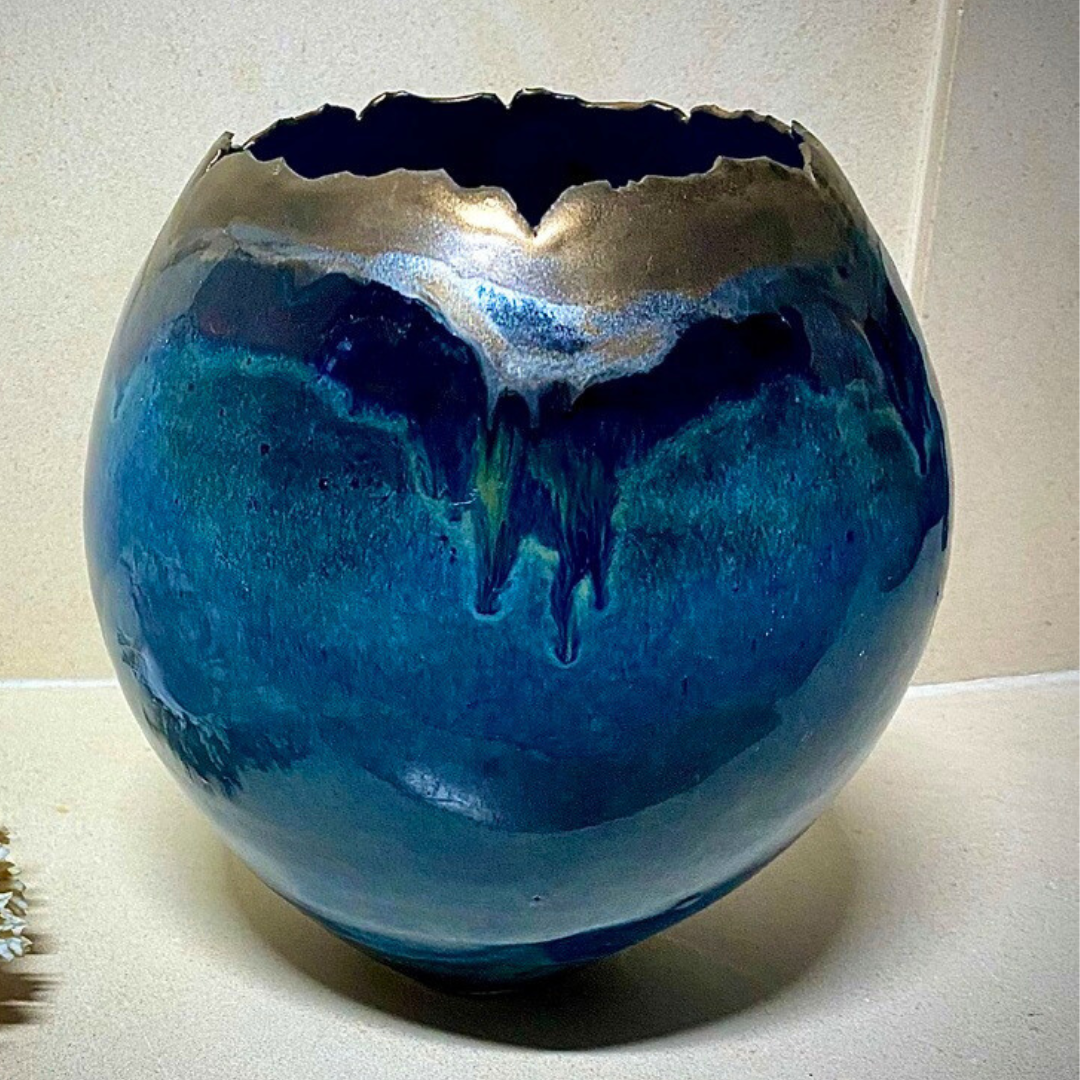 I'm a full-time ceramicist working in London. I wheel-throw white stoneware clay in my own studio. My pieces tend to be thin, rising from gravity-defying small bases and with intense glaze combinations. My vision is not about utility; it's entirely driven by an expression of beauty. I work always towards an ideal of perfection but I’ve come to embrace the quirks of the entirely individual pieces I create. Colour, form and serendipity are at the very centre of my work.