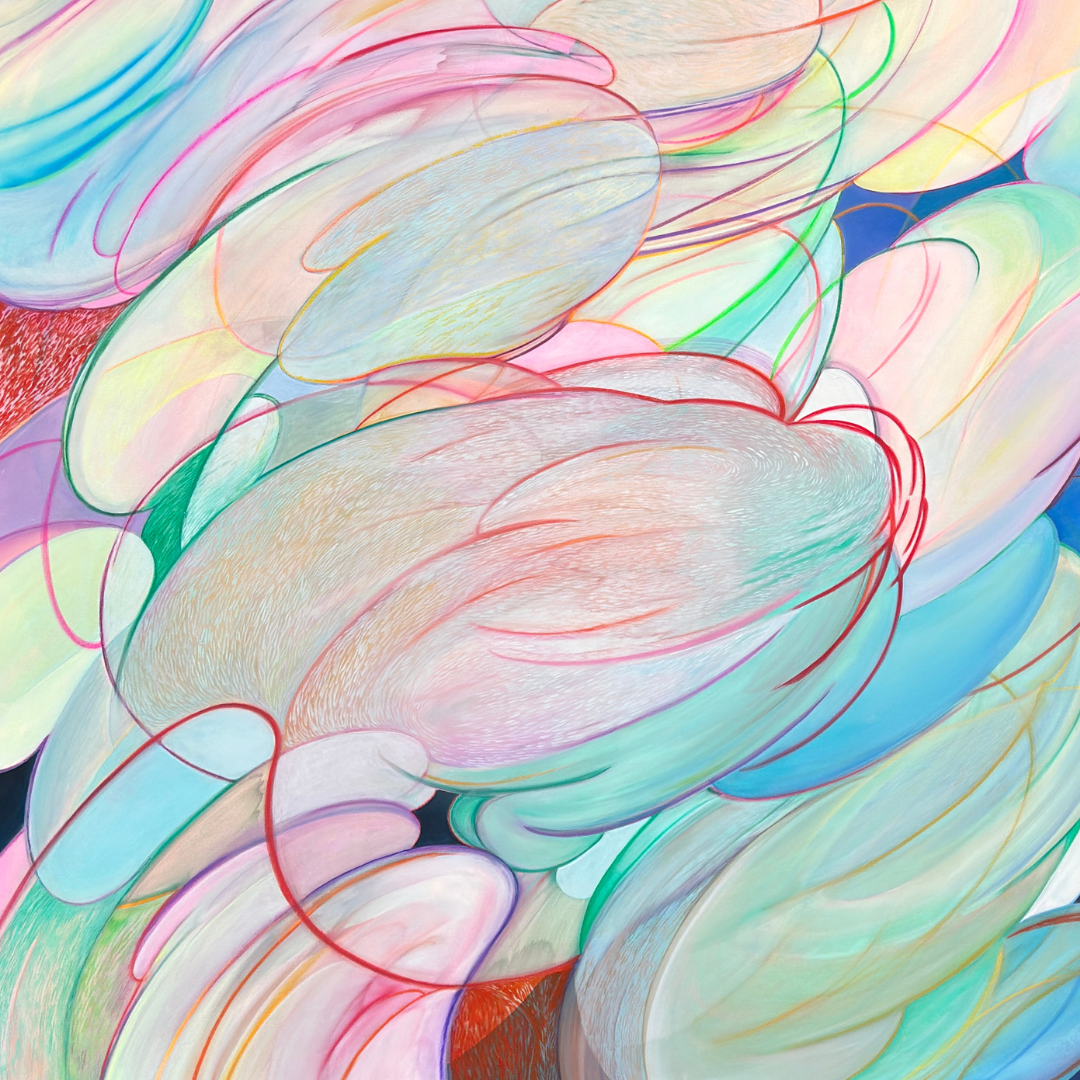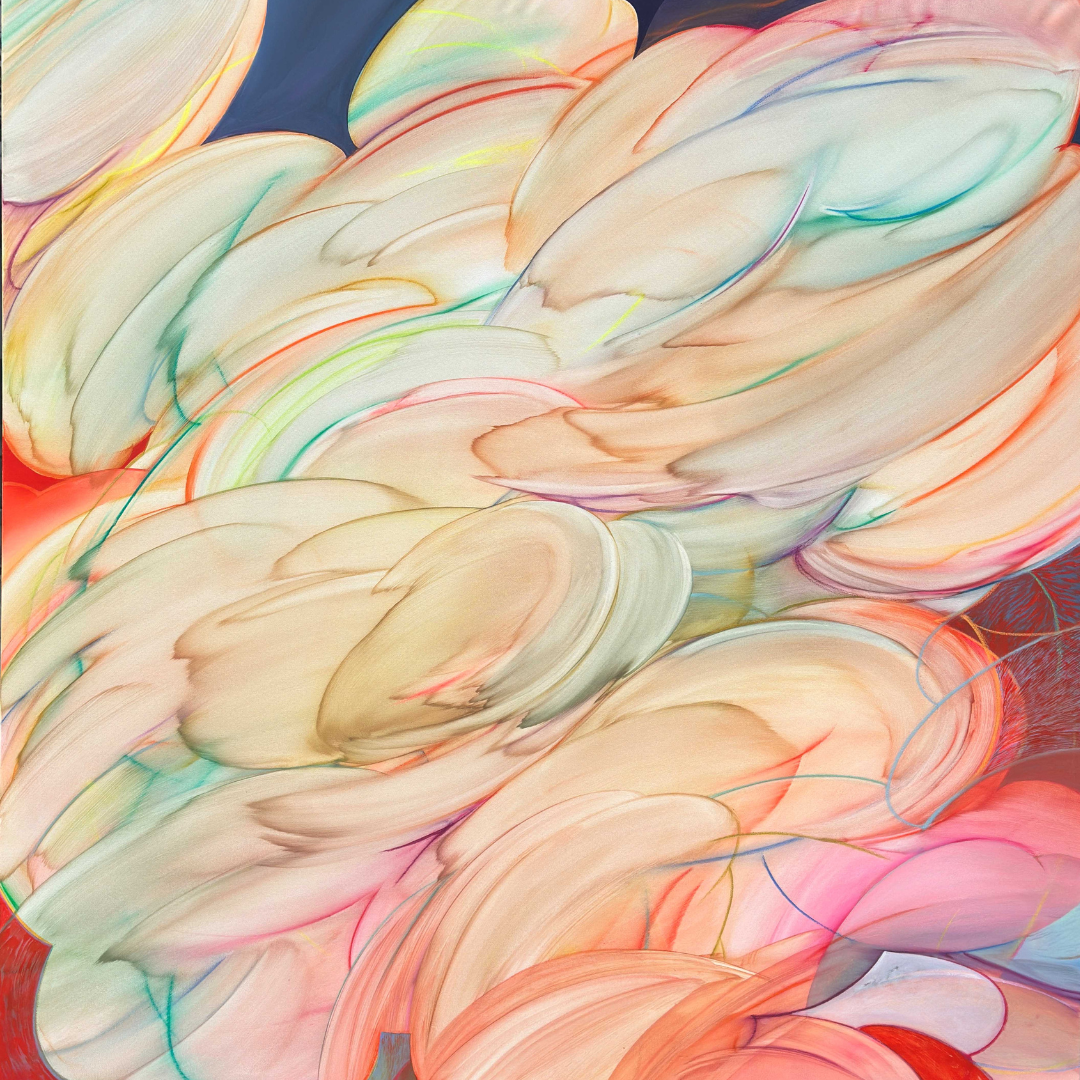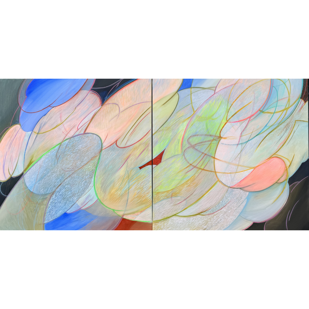 Expanding into larger canvases and multi-surface works, the series brings together ideas developed across the artist’s past decade. “House” speaks to home, family, and temple, while “Eden” suggests a sacred space where beauty feels personal. Through linear forms, imperfect symmetry, and layered media, the works invite movement rather than a fixed direction.