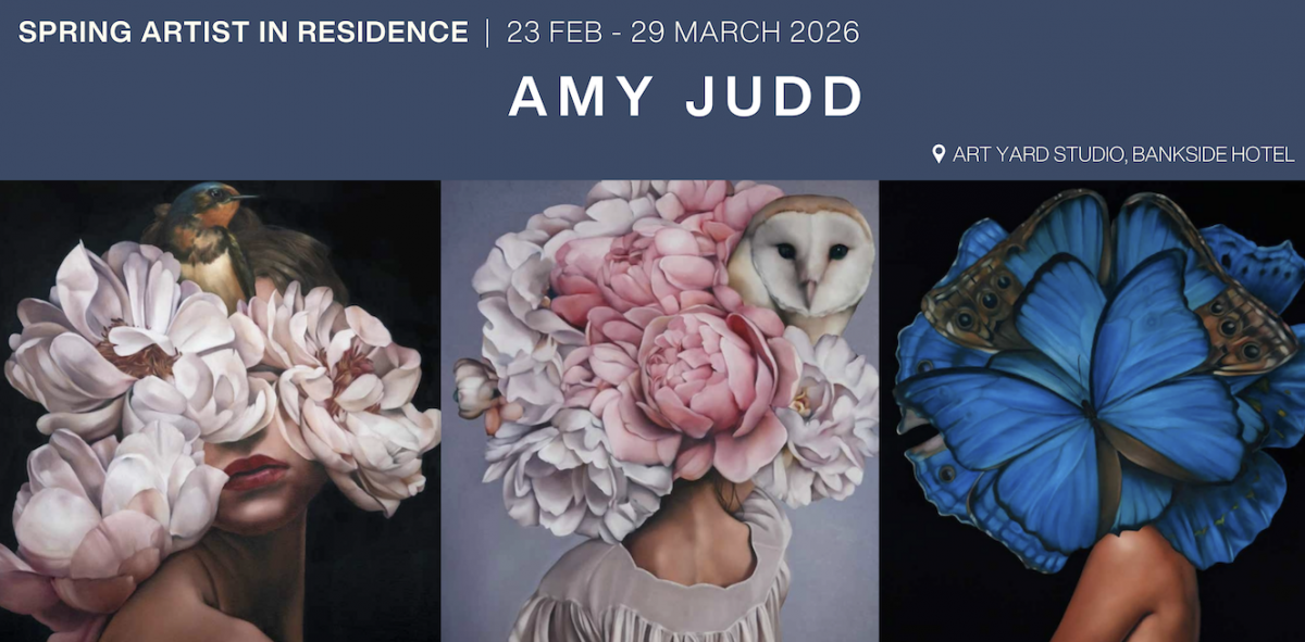 Bankside Hotel x DA Gallery are delighted to welcome British contemporary painter Amy Judd as their early Spring Artist in Residence. Known for her evocative, dreamlike figurative paintings, Judd’s work explores the emotional and symbolic relationship between women and the natural world, drawing on folklore, mythology, and ideas of transformation.