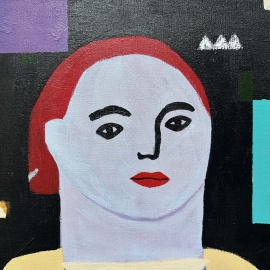 My work explores the relationship between spontaneity and structure through bold use of colour and form. Layers of vibrant paint are applied intuitively, allowing each brushstroke to suggest the next, so the composition grows organically. Each paintings carries both playful energy and underlying rhythm, with contrasting shapes interacting like voices in conversation. Fragments of text and stamped impressions appear within the painting, introducing a subtle narrative dimension. These elements are not meant to provide direct answers but to spark curiosity, drawing the viewer into a dialogue with the work. The ambiguity invites multiple interpretations, shifting between humour, irony and personal reflection.