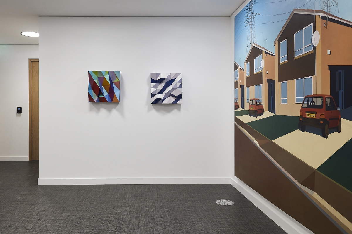 The low poly structures are reminiscent of computer graphics and simulations, much like the works of Julian Opie. The surfaces of colour and shape are flattened and reduced to its minimal components.