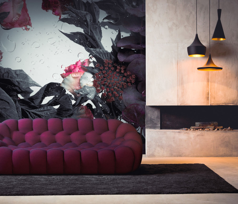 Claire created each piece in the Botanica collection through merging different disciplines, floral arrangements captured as they interact with the space in front of Luxton's camera lens. The materials that make up the finished pieces include acrylic, resin and carefully selected flowers. The depth and drama within each piece in the Botanica collection lends itself perfectly to a romantic and contemporary wall mural.