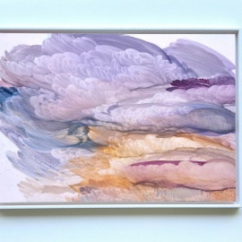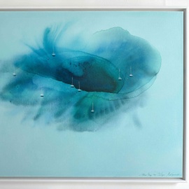 Yuliya's collections are characterized by an elegant flow and ethereal glow, exploring themes of fragility and strength in her skyscapes, the isolation of the sea in her dreamy sailboat series, urban dynamics in her Connected works on paper, and the cyclical nature of florals in her Blossom collection. Each piece invites viewers into a dreamy elemental realm, evoking a sense of light nostalgia with its weightless emotions.