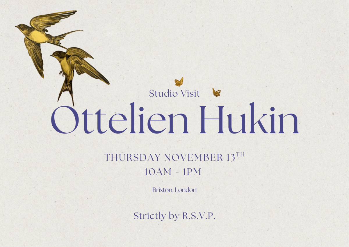 We are pleased to invite our collectors to an intimate studio visit with Ottelien Huckin, offering a rare opportunity to meet the artist and explore her practice up close.